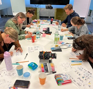 De kracht van zakelijk tekenen ligt in het visueel maken van een boodschap. Wij mensen leren en onthouden vaak beter met visuele taal dan met geschreven taal. Daarom gebruiken we zakelijk tekenen bijvoorbeeld om een complexe boodschap over te brengen, om een programma of planning overzichtelijk te laten zien of om teamleden te laten nadenken over een situatie. Ook vragen we teamleden soms om zelf ideeën of situaties te tekenen. Dit zet het creatief denken aan en helpt mensen om gedachten te structureren. In de training Zakelijk Tekenen, gegeven door collega Marjet de Vries leerde Jong Morgens alle ins en outs van het Zakelijk Tekenen, leerzaam, creatief en heel leuk om te doen!